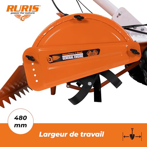 - Le motoculteur semi-professionnel RURIS 5800R est équipé d'un moteur général 4 temps, plus fiable et équilibré, avec une boîte de vitesses à 2 vitesses, 1 avant et 1 arrière.